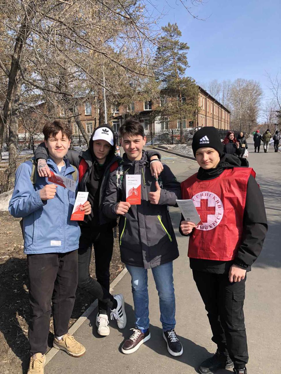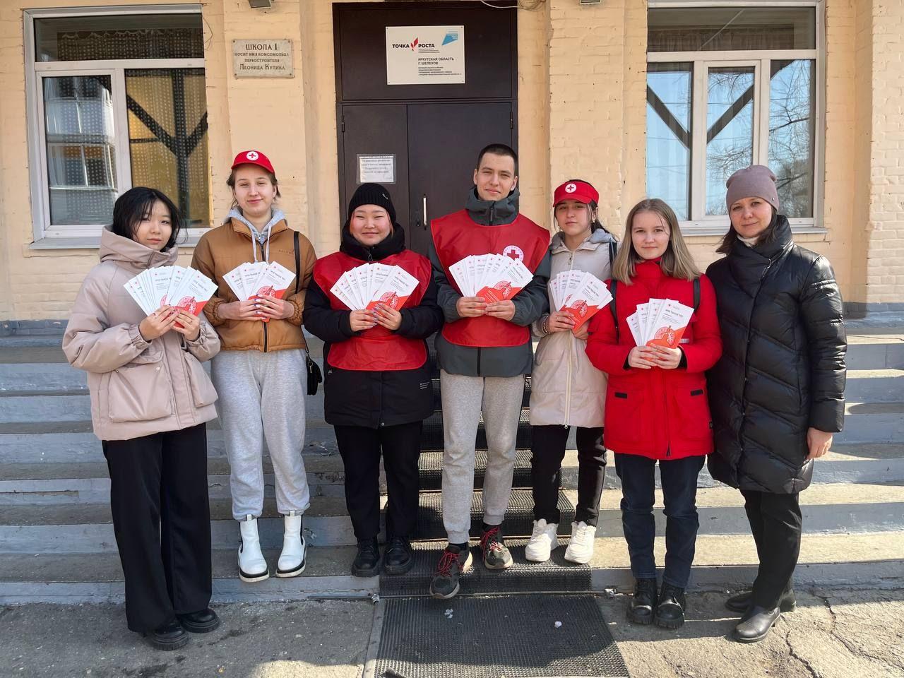 В содружестве с Шелеховским отделением Российского Красного креста сотрудники филиала раздавали информационные листовки и беседовали с людьми в самых оживленных местах города. Побывали в социальном пункте гуманитарной помощи, на площади близ Шелеховской районной больницы и школы № 1, а также гимназии.