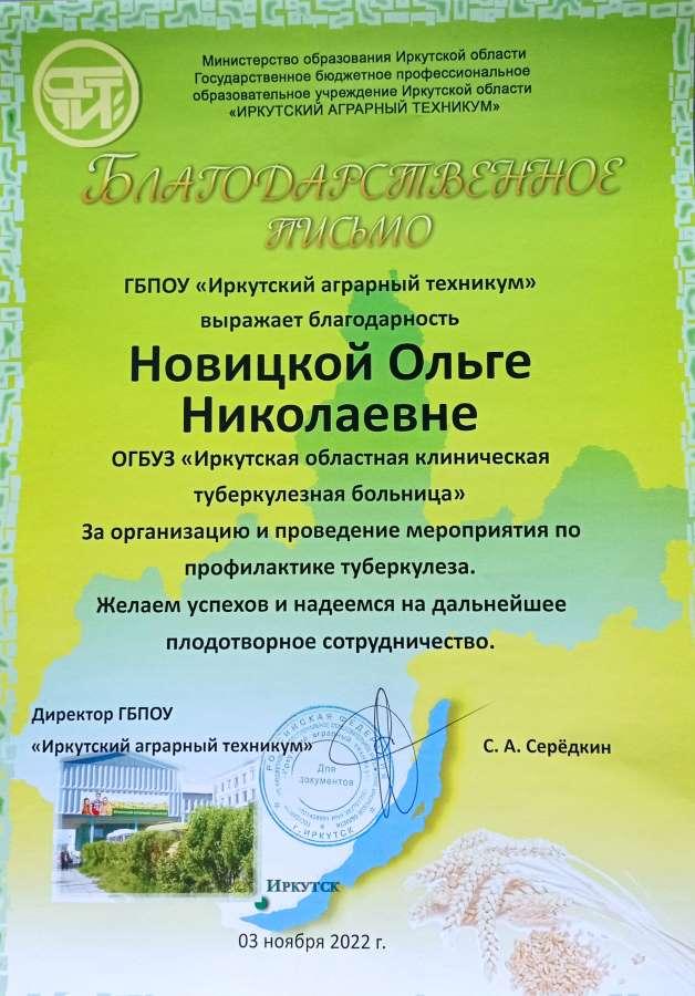 Благодаря профессионализму, спокойному доброжелательному тону повествования, содержательности и доступности материала лекция понравилась слушателям. А Ольге Новицкой представитель администрации техникума вручила благодарственное письмо и выразила желание приглашать наших специалистов регулярно: «Ведь в техникуме обучается более 700 студентов и осведомлены должны быть все».